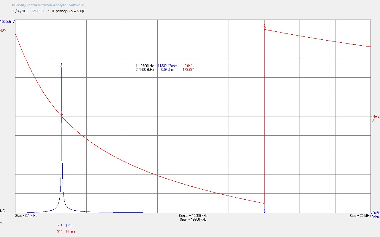 Fig. 1.2. 1P primary impedance 4.055Ω @100kc/s.
